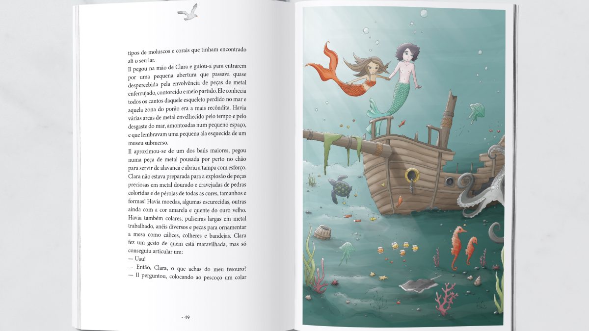 Sempre gostei de escrever, mas como escolhi a área das ciências foi um desafio fazer um texto maior que um mail. Foi por isso que alguns anos mais tarde ingressei numa licenciatura em História onde comecei a aperfeiçoar as artes da escrita. No entanto, não quis deixar de concretizar o meu primeiro sonho compartilhado pela minha filha e produzir um pequeno livro com sereias. Tive a ajuda preciosa de uma amiga que fez umas ilustrações lindíssimas e me ajudou em todo o processo relativo à imagem do livro, o que foi fundamental.